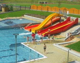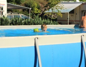 The swimming pool at Camp Karolina is open during July and August.