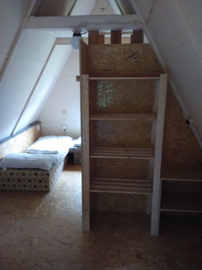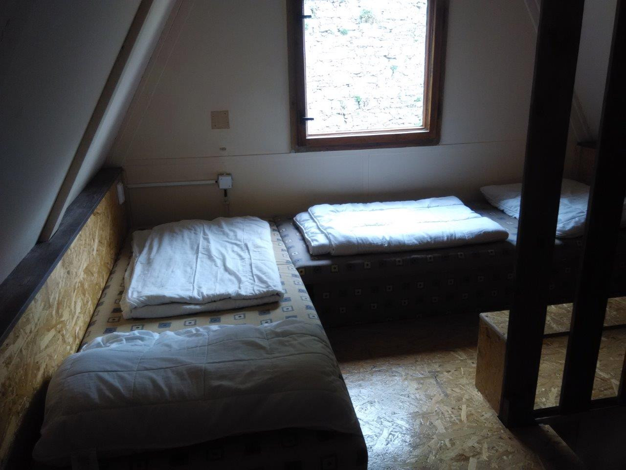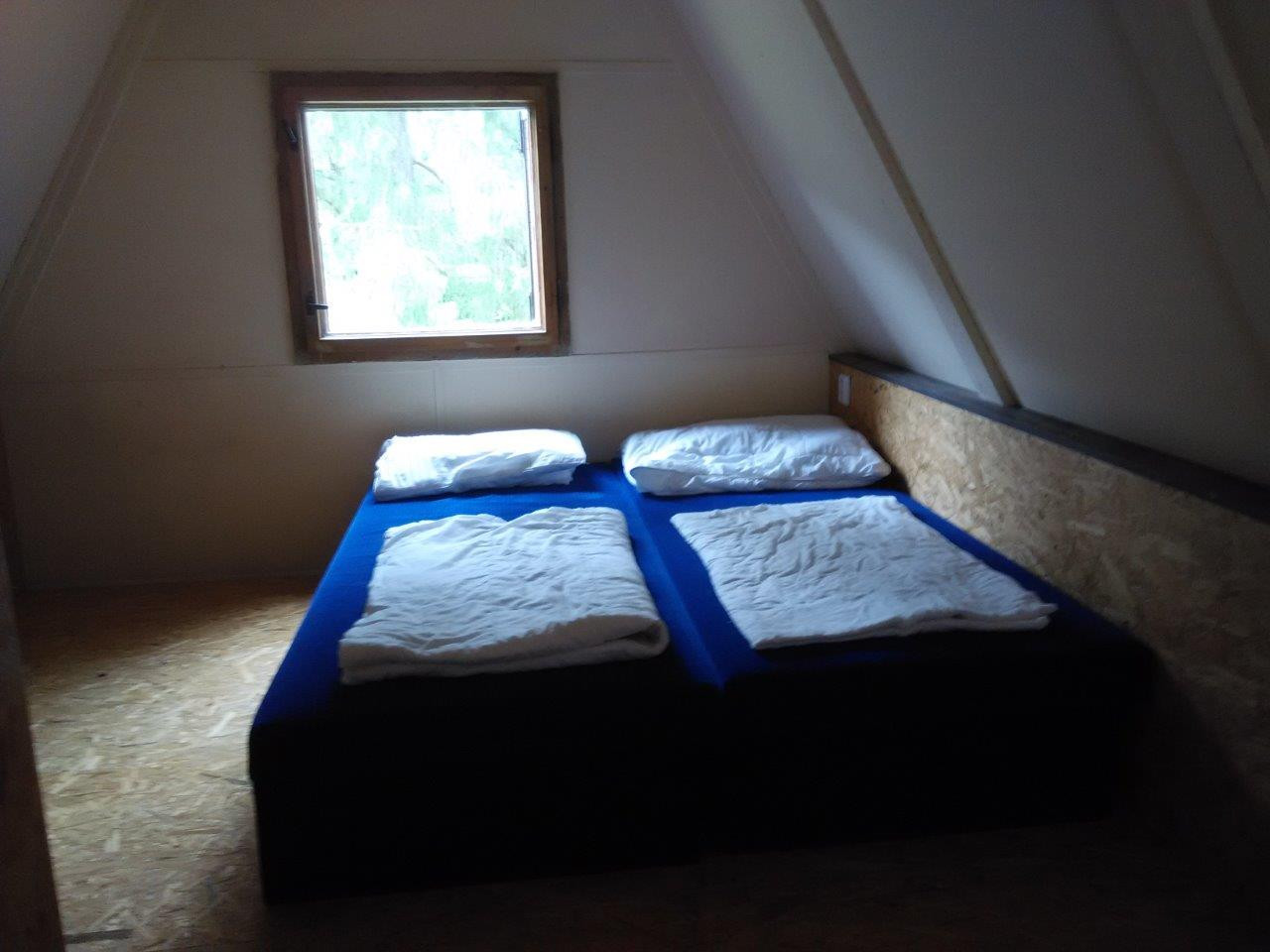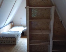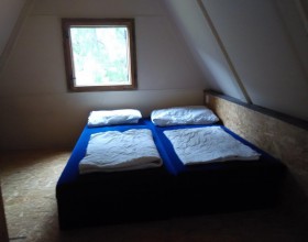 V chatě typu "A" je v patře jedna ložnice se čtyřmi lůžky.